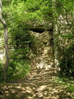 Kirkdale Cave as described by Buckland in 1821 (left) and as the entrance is today (above). |